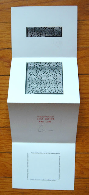An end of the year, or New Years card accordion from this Madison-based artist. Two of the pages display the dictionary definitions for both "another" and "year," in a thoughtful meditation and reflection on the fleetingness of time, and of the year that has just passed.