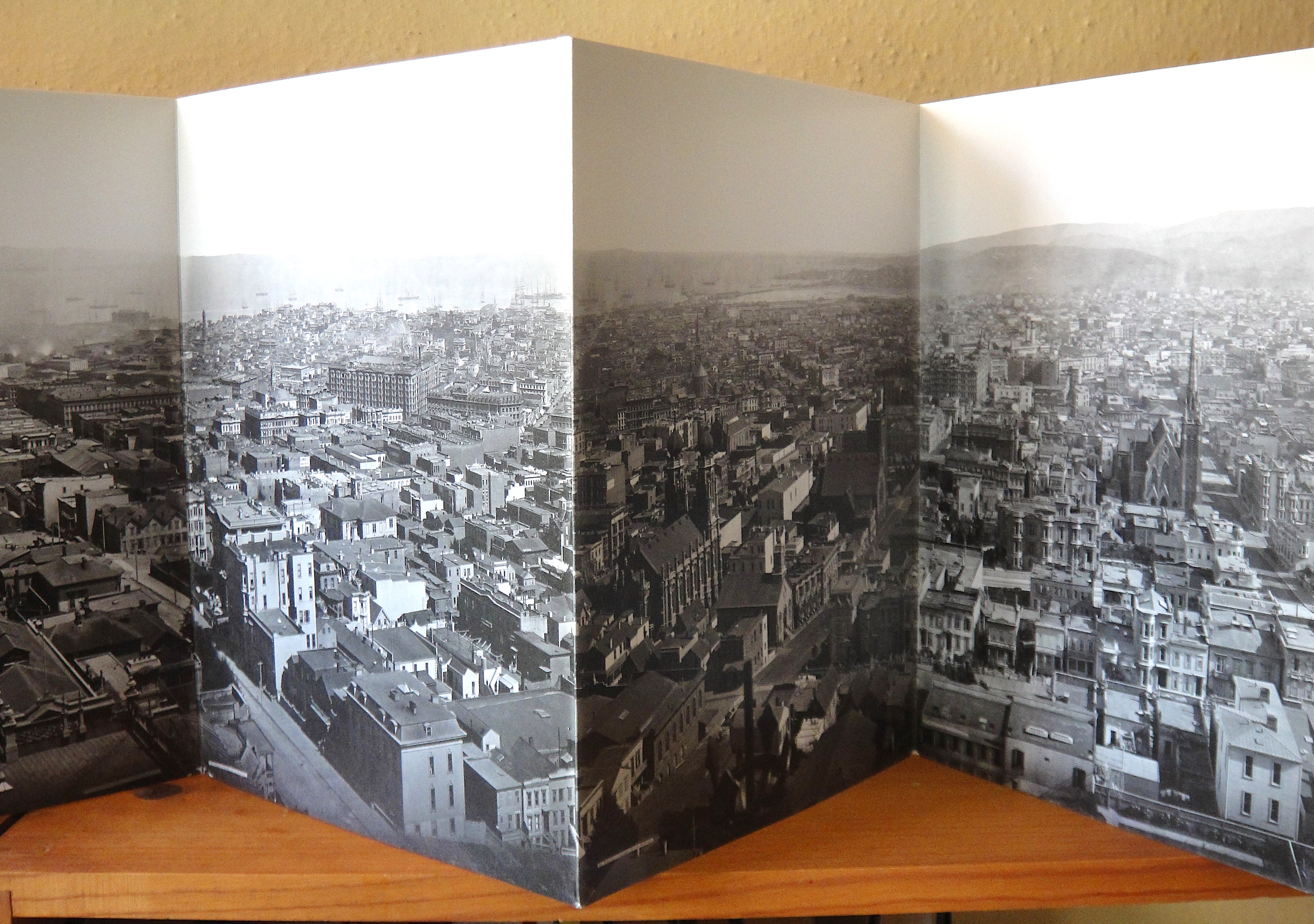 This 10 color silkscreen book with its multi-flap folded pages, is not technically an accordion, but when the pages are opened up some of the same effects can be seen and experienced as when viewing a traditional accordion. At the heart of the accordion book lies the 'fold,' and Marty's book playfully exploits all the surprises and unexpected encounters that happen when this feature is incorporated into the making of a book.
